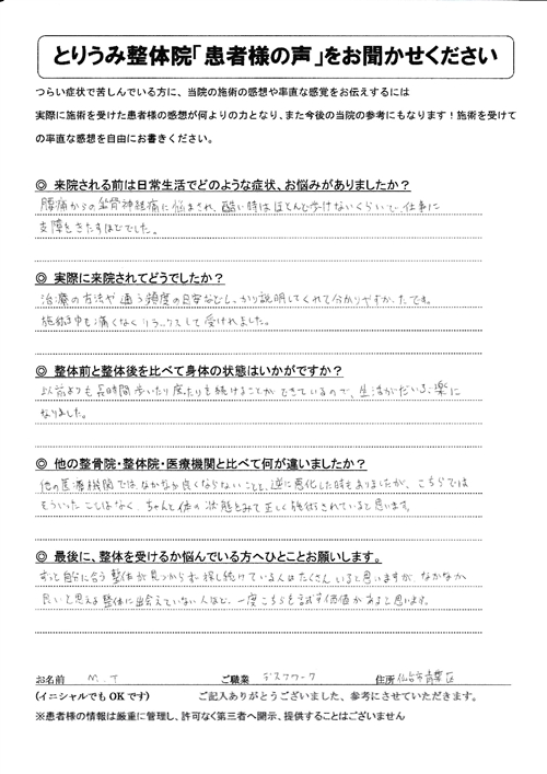 M・T様 デスクワーク 仙台市青葉区